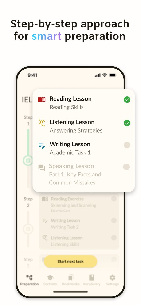 Interactive dialogues replicate real IELTS Speaking tasks, while a wide collection of audio materials simulates the Listening exam environment - building confidence for every challenge on test day.